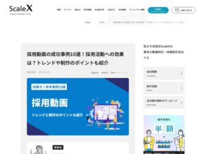 株式会社ScaleXの事例では、採用サイトのデザインテイストや使用しているキーメッセージと採用動画の世界観を統一することで、応募者に一貫したブランドイメージを提供しています。具体的には、採用サイト内に動画専用のセクションを設け、各職種や部署ごとの動画コンテンツを整理して配置することで、応募者が自分の興味ある領域の情報にスムーズにアクセスできるようにしています。